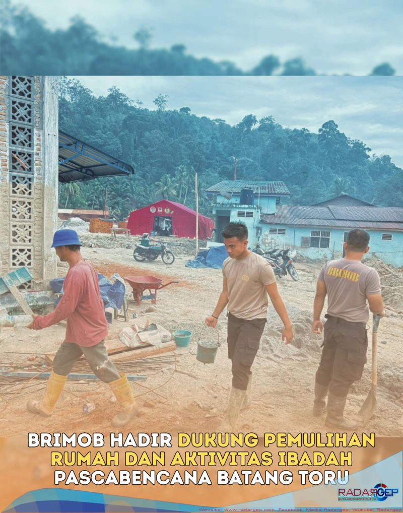 TAPANULI SELATAN | RADARGEP.COM — Personel Batalyon C Satuan Brimob Polda Sumatera Utara terus melanjutkan upaya pemulihan pascabencana banjir bandang di Kecamatan Batang Toru, Kabupaten Tapanuli Selatan. Pada Kamis pagi (15/1/2026), personel Brimob kembali diterjunkan untuk melakukan pembersihan rumah warga yang terdampak material pasir, kayu, dan batu, sekaligus pembangunan fasilitas MCK di rumah ibadah.