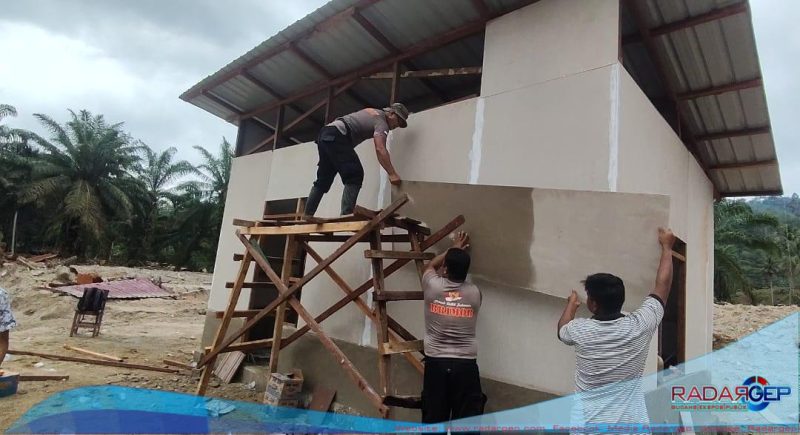 TAPANULI SELATAN | RADARGEP.COM – Kepedulian Polri terhadap masyarakat terdampak bencana terus diwujudkan secara nyata. Personel Satuan Brimob Batalyon C Polda Sumatera Utara bersama TNI dan masyarakat setempat kembali melanjutkan pembangunan hunian sementara bagi korban banjir di Desa Tolang Julu, Kecamatan Sayur Matinggi, Kabupaten Tapanuli Selatan, Minggu (28/12/2025).