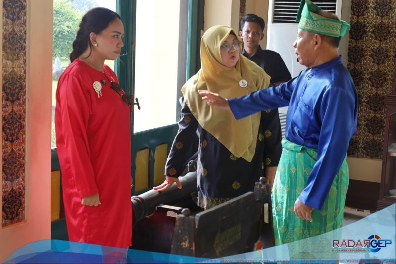 SIAK | RADARGEP.COM – Bupati Siak, Afni Zulkifli, menerima kunjungan Utusan Khusus Presiden RI Bidang Pariwisata, Zita Anjani di Kabupaten. Utusan Khusus di ajak melihat bangunan cagar budaya seperti Istana Siak, Museum Balairung Sri atau Balai Kerapatan Tinggi dan Tangsi Belanda.