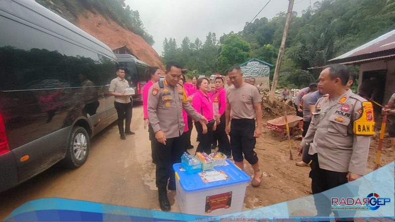 TAPANULI UTARA | RADARGEP.COM — Di tengah kelelahan personel Polri yang berjibaku membantu membersihkan rumah-rumah warga terdampak banjir dan tanah longsor, kepedulian dan perhatian datang dari keluarga besar Bhayangkari. Ketua Bhayangkari Daerah Sumatera Utara melalui pengurus Bhayangkari Daerah Sumut menyalurkan bantuan logistik makanan kepada personel yang bertugas di Kecamatan Adiankoting, Kabupaten Tapanuli Utara, Kamis (18/12/2025).