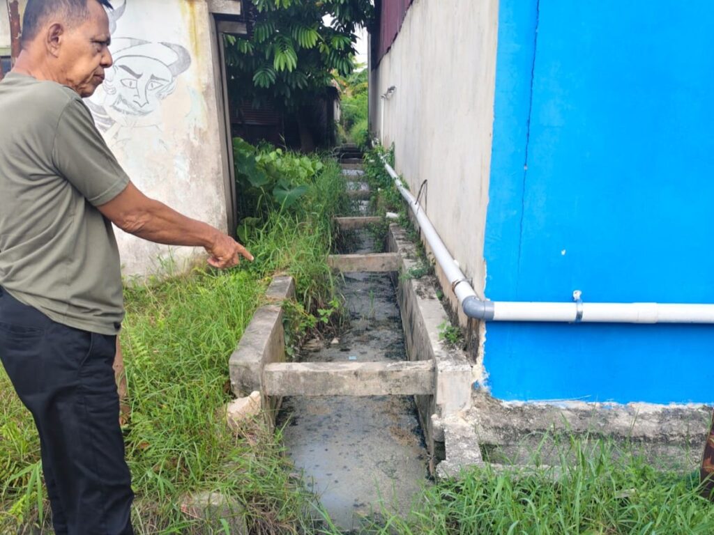 “Kami dan ada ibu-ibu lansia yang tinggal tepat di depan parit pembuangan ini. Kami yang paling menderita menghirup bau setiap hari,” keluhnya.