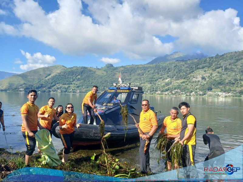 Kegiatan diawali dengan penyapuan dan pengumpulan sampah di area Water Front Pangururan, kemudian dilanjutkan menuju tepi Danau Toba. Di lokasi tersebut, Kapolres Samosir bersama seluruh personel memungut dan mengumpulkan sampah organik maupun nonorganik. Sementara itu, kapal Sat Polairud melakukan pendorongan tumbuhan enceng gondok dari Danau Toba menuju tepi danau, yang selanjutnya diangkat ke darat oleh personel.
