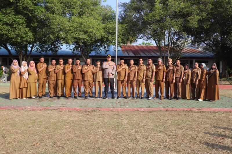 Kegiatan yang berlangsung di lapangan sekolah tersebut turut didampingi para Pejabat Utama (PJU) Polres Langkat serta dihadiri oleh Kepala Sekolah, dewan guru, tenaga kependidikan, dan seluruh siswa sebagai peserta upacara.