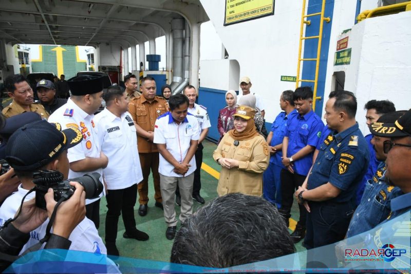 Tak hanya itu, Bupati Bengkalis Kasmarni juga melakukan kunjungan langsung ke kapal KMP Sereia Domar yang tengah bersandar di Dermaga RoRo Air Putih untuk memastikan kelancaran penggunaan jasa penyeberangan tersebut.
