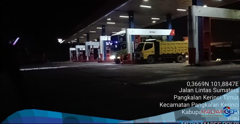 PELALAWAN | RADARGEP.COM – Pada Selasa dini hari sekitar pukul 02.30 WIB, sejumlah konsumen lain yang baru pulang dari Dundangan mendapati antrean kendaraan mencurigakan di SPBU 14.283.6109 PT KSO Pangkalan Kerinci, tepatnya di Jalan Lintas Sumatera menuju Desa Kemang, Kabupaten Pelalawan, Provinsi Riau, tidak jauh dari Kantor Polres Pelalawan.