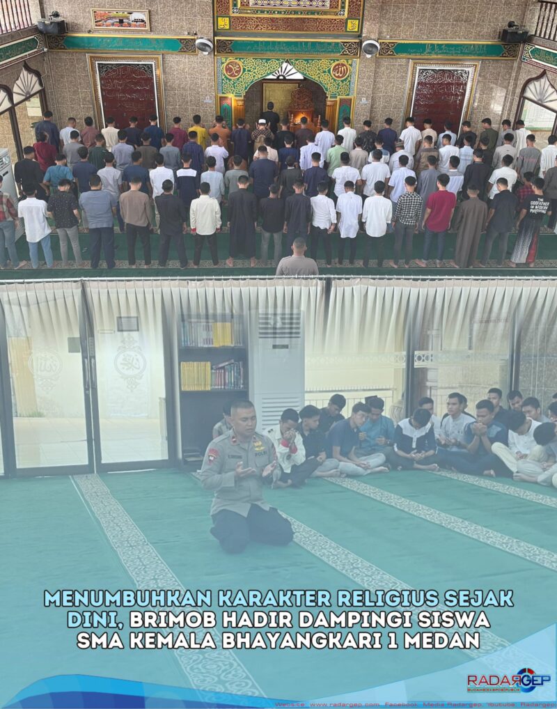 MEDAN | RADARGEP.COM — Instruktur ekstrakurikuler dari Satuan Brimob Polda Sumut melaksanakan kegiatan pembinaan keagamaan bagi siswa muslim di SMA Kemala Bhayangkari 1 Medan. Kegiatan ini menjadi bagian dari upaya penguatan karakter religius dan pembinaan mental spiritual peserta didik di lingkungan sekolah, Selasa (24/2/2026).