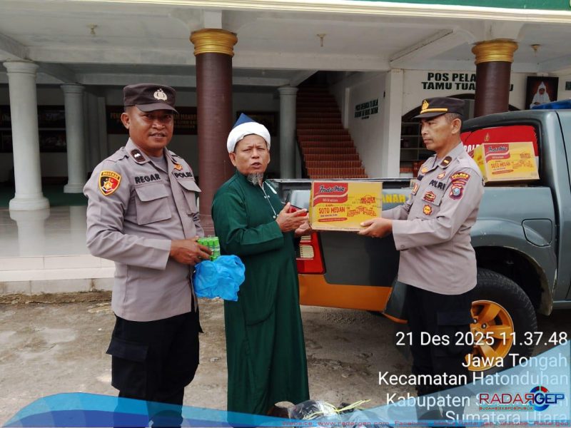 SIMALUNGUN | RADARGEP.COM – Kepedulian Polri terhadap korban bencana alam kembali terwujud nyata. Polsek Tanah Jawa Polres Simalungun menyalurkan bantuan kemanusiaan kepada korban bencana melalui Persulukan Tuan Guru Batak di Jawa Tengah, Kecamatan Tanah Jawa, Kabupaten Simalungun, pada Minggu (21/12/2025) siang.