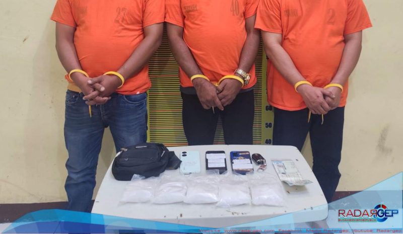 Dalam pengungkapan tersebut, tiga orang pria yang diduga terlibat dalam jaringan peredaran narkoba berhasil diamankan, yakni FR (40), JH (51), dan RY (40).