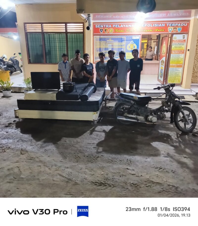 “Ketujuh orang ini diduga merupakan kelompok yang sama dengan modus operandi serupa. Saat ini kami masih mengejar satu orang lagi berinisial A (30) yang telah ditetapkan sebagai DPO,” tegas Kapolsek.