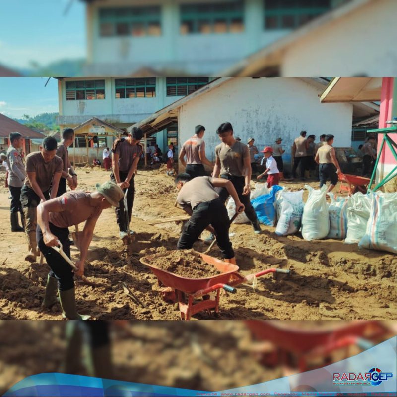 Sekolah Terdampak Bencana Dibersihkan, Brimob TNI Percepat Pemulihan Pendidikan di Tapanuli Tengah