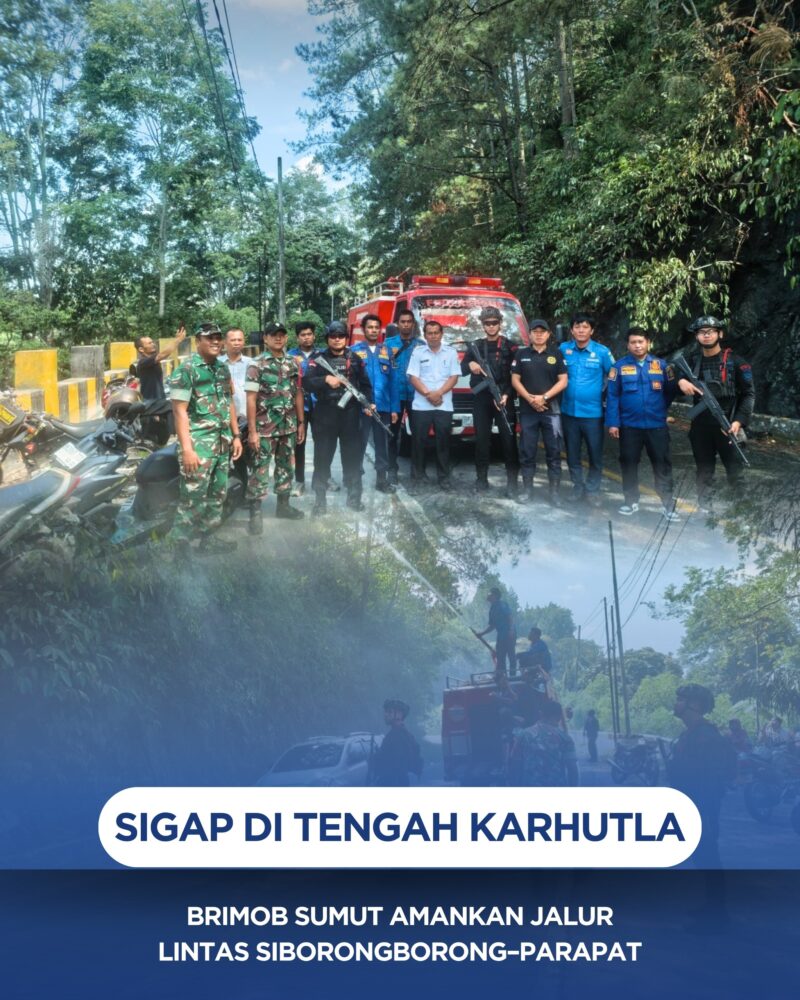 Sigap di Tengah Karhutla, Brimob Sumut Amankan Jalur Lintas Siborongborong–Parapat